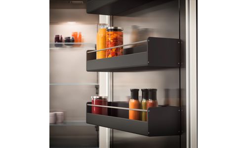 - De laden in de RC en de RF modellen bevinden zich op gelijke hoogte. Bij een side-by-side installatie kunnen de glazen afzetvlakken en de deurvakken op dezelfde hoogte uitgelijnd worden.